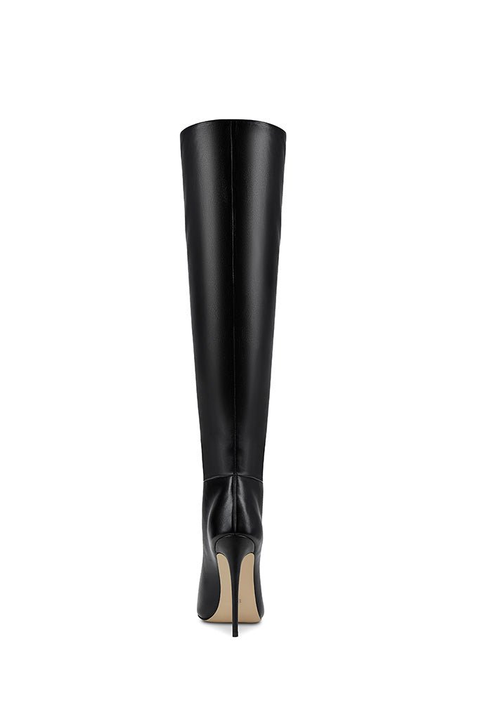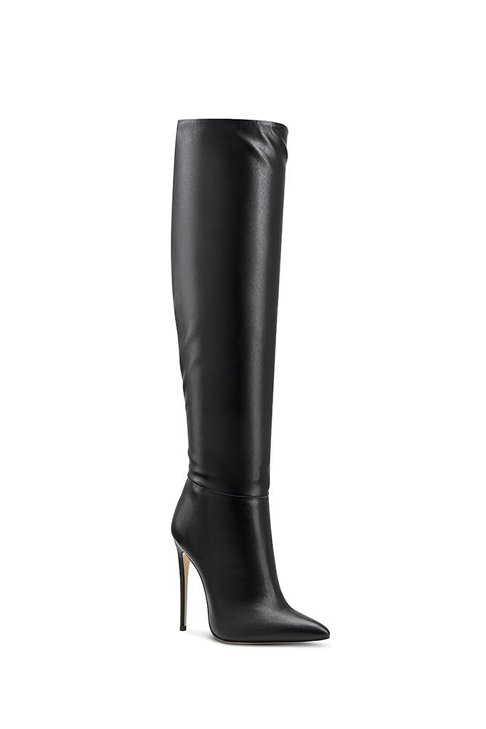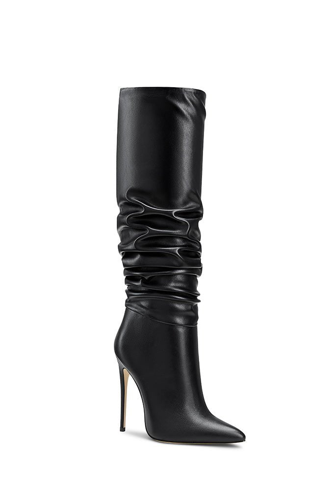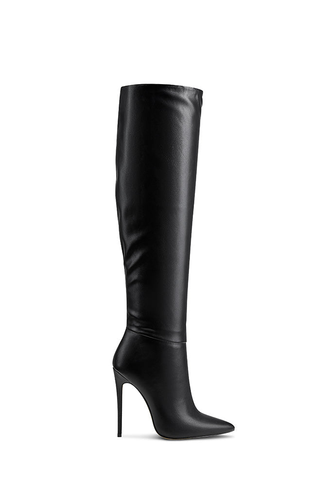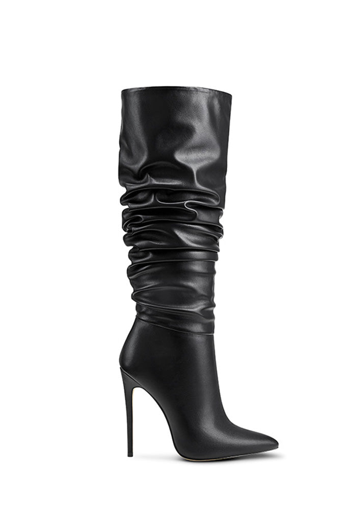 The Mariel Boots are crafted from rich vegan leather and can be worn slouched down or upright for a two-way design. The tall pair is anchored by a leg-lengthening stiletto heel, providing the perfect combination of height and comfort.